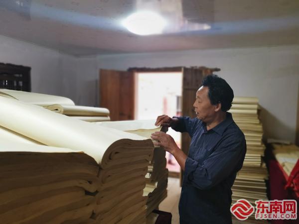 劉仰根整理今年造的新紙。 肖曉敏 攝 西山造紙技術(shù)完整傳承了蔡倫造紙工藝,造出的紙紙質(zhì)經(jīng)久不蛀、久存不變色,是書寫、印刷、修復(fù)古籍的佳品。 西山竹紙取材于國家級自然保護(hù)區(qū)龍棲山的上等嫩毛竹,從備料到生產(chǎn)要等120多天,造出一張合格的紙需經(jīng)過備灰、劈山、修料塘、浸漂、壓塘等二十八道工序,對造紙藝人的技術(shù)和耐心提出了很高的要求。抄紙是其中最考驗手藝人技術(shù)的環(huán)節(jié),手藝人要做到心手相連,雙手將紙簾放入漿液中,慢慢抄起漿液,前后左右蕩,利用手腕的力量過濾掉多余的雜質(zhì),將精華留住,反扣在紙架上,一張紙就好了。 2008年獲得“國家級非遺”的招牌后,傳承人劉仰根堅持不懈,每年花幾萬元補(bǔ)貼竹紙作坊生產(chǎn)并教導(dǎo)學(xué)徒。漸漸地,劉仰根制作的西山竹紙受到社會各界和市場的關(guān)注和認(rèn)可。2010年起,通過連續(xù)幾年參加海峽兩岸文博會,西山竹紙逐步拓展了銷售市場,許多書畫家、出版社紛紛前來龍棲山訂購西山竹紙。隨著政府和社會對文化傳承工作的重視,西山竹紙進(jìn)校園、進(jìn)社區(qū)、進(jìn)直播間......獲得了更多人的熱愛。 |