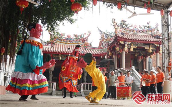 浦南古儺參加廟會表演。李斌 供圖 漳州市薌城區流傳著一種古老的儺舞形式——浦南古儺,又稱“大神尪”。據民間傳說,浦南古儺始于唐朝末年,最早是當地居民迎神賽會、驅逐疫鬼的一種儀式,后來逐漸增加了迎祥祈福、酬神納吉的功能,演變為傳統的民俗活動。在逢年過節、重大慶典或民間活動中,都可以看到“大神尪”的表演。2011年5月,浦南古儺入選第三批國家級非物質文化遺產擴展項目名錄。 浦南鎮現有兩尊“大神尪”:一尊是七品縣官形象,另一尊是書童形象。“大神尪”的制作是以竹條為材料編成鼓形竹筐,外罩繡有精美圖案的服飾。表演時,由舞尪人鉆進尪里用肩膀扛起,戴上面具,“縣官”手握“國泰民安”或“風調雨順”的牌子,“書童”舉著扇子,踩著伴奏鑼鼓的節奏舞蹈,另有一“大頭娃娃”在他倆之間蹦蹦跳跳。“大神尪”的舞蹈動作既夸張又滑稽。近年來,學者研究發現,浦南“大神尪”與臺灣宜蘭地區的“大神尪仔”的外形、制作方法和表演形式、功能作用基本相同。 我國儺文化中的形象以自然界神靈,鬼怪宗教神仙、神話傳說以及動物圖騰為多,浦南“大神尪”卻以“七品縣官”為形象,作為驅邪逐疫的主角,這在全國儺文化中是極為罕見的。浦南“大神尪”對于研究我國儺文化、閩臺民間信仰淵源傳承關系極具重要價值。 |