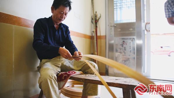 黃進(jìn)泉制作蒸籠。東南網(wǎng)記者江瑞鑫 攝 莆田北岸經(jīng)開區(qū)位于忠門半島,這里素有手工制作蒸籠的傳統(tǒng)。2018年,忠門蒸籠制作技藝被列入第六批莆田市級非物質(zhì)文化遺產(chǎn)代表性項目名錄。 忠門蒸籠制作是用富有彈性的柳杉,配以柔韌的竹片和山藤材料,經(jīng)過精心加工制作而成。蒸籠制作工序分配料、卷彎、鎖夾、藤扎諸道。配料制作以皮刀劈工見長,能把炊柴劈成厚度0.4厘米的炊料,且分毫不差。制作蒸籠的主要工具有皮刀、裁刀、刨刀、鉛子和炊夾(鐵夾和木夾)。 莆田人即使遠(yuǎn)赴他鄉(xiāng),仍然不忘帶上蒸籠。制作蒸籠的柳杉吸水性較好,蒸出來的饅頭、包子皮軟而干;柳杉獨(dú)特的木質(zhì)香味能持續(xù)散發(fā)幾十年,其所蒸的食品帶著淡淡的清香,別有風(fēng)味,那便是鄉(xiāng)愁的味道。 |