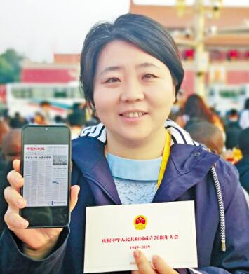 劉曉星:在現場見證生態文明的綠色交響 “如果說時間有重量,那一定在每個人的心里。”國慶閱兵結束后,《中國環境報》記者劉曉星寫下這樣一句話。 10年前,也是在同樣的地點,劉曉星作為環保系統代表登上生態環保彩車,參加新中國成立60周年國慶大閱兵。那時,身為記者的她也是五一勞動獎章獲得者。 在過去10年中,劉曉星參與中央環保督察報道,到過松花江水污染的現場進行采訪,多次參與重大環境新聞的采寫報道。“一輛輛彩車經過,展現的是一幅幅綠水青山、鳥語花香的美麗中國新畫卷;一輛輛彩車,將生態環保的元素融入其中,讓一曲曲生態文明的綠色交響在天安門廣場上、在神州大地上激蕩回響。”在劉曉星看來,10年來,生態文明理念牢固樹立,生態環保事業快速發展,生態環境質量持續好轉…… “作為一名環保戰線記者,一名生態環保人,見證70周年國慶大閱兵,心中無比自豪和興奮。”劉曉星說,10年給予她的,是在大時代的舞臺上,用觀察與思考詮釋信仰,用情與筆記錄生態環境保護波瀾壯闊的歷史。 當劉曉星以天安門為背景,手里拿著呈現出《中國環境報》版面的手機,再次定格的時候,在她的心中,一次新的出發又將開始。