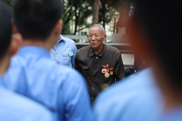向先烈獻花。圖片來源:中國鐵路南昌局集團有限公司 據介紹,永安烈士陵園占地面積15余畝,是全國唯一一座以紀念建設鐵路而犧牲的先烈為主題的愛國主義教育基地。于1958年4月由原鐵道兵8511部隊修建,安葬建設鷹廈鐵路犧牲的19位戰士。后被永安市確定為愛國主義教育基地,并于2013年擴建了烈士悼念臺,重新樹立永安革命烈士紀念碑,并將第二次國內革命戰爭、抗日戰爭、解放戰爭,以及在剿匪斗爭和社會主義建設時期英勇獻身的170位烈士英名鐫刻于此,供后人瞻仰。 當天,已95歲高齡的安徽籍鐵道老兵營道修向采訪團講述了當年鷹廈線建設的往事。“我是一名炮兵通信兵,哪里有需要就去哪個戰場。”營道修說。1953年在抗美援朝戰爭中,他所在的部隊任務非常艱巨,以農建第五師為基礎整編為志愿軍鐵道工程第十一師,擔負橋梁架設,鐵路鋪設和線路維護搶修任務。回國后,營道修積極響應國家號召參與修建廣西黎湛線,隨后跟隨部隊來到福建參與鷹廈鐵路建設,負責搶建沙縣到桂口93千米的線路。“剛到施工現場,沒有住的地方,我們只能從河對岸砍來毛竹搭建營房。當時沒有船,我們就用身體在冰冷的河里來回穿梭運輸,冬天零下幾度的河水凍的所有人渾身發抖”營道修說。