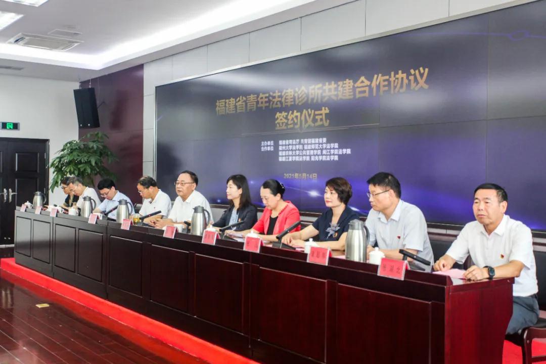 圖片來源:福建省司法廳 5月14日,福建省司法廳與團省委、在榕高校舉辦青年法律診所共建合作協議簽約儀式。省司法廳黨委書記、廳長鄔勇雷,團省委副書記陳怡,省司法廳黨委委員、政治部主任林安泰、副廳長李妙君等省直機關領導,與福州大學、福建師范大學、福建農林大學、閩江學院、江夏學院、陽光學院等高校有關學院領導出席活動。