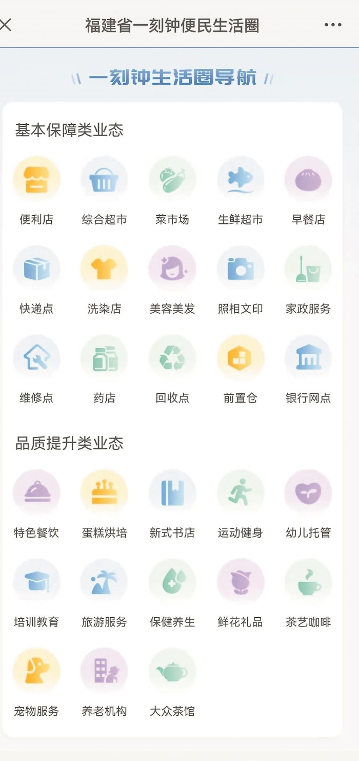 “一刻鐘便民生活圈”平臺 東南網(wǎng)8月27日訊(本網(wǎng)記者 盧金福 實(shí)習(xí)生 楊子鈺 文/圖)“在家門口就能購買到各類生活用品和服務(wù),太方便了!”家住福州軍門社區(qū)的市民何女士說道,社區(qū)附近商業(yè)配套豐富,步行幾分鐘消費(fèi)需求就能得到滿足。今年5月,商務(wù)部等12部門聯(lián)合印發(fā)《關(guān)于推進(jìn)城市一刻鐘便民生活圈建設(shè)的意見》,提出要在居民步行15分鐘左右的范圍內(nèi),建設(shè)可以滿足日常生活基本消費(fèi)和品質(zhì)消費(fèi)的多業(yè)態(tài)集聚的社區(qū)商圈。福建正在積極打造一刻鐘便民生活圈,進(jìn)一步豐富群眾生活、滿足群眾消費(fèi)需求。 便民生活圈快速發(fā)展 1952年建立的軍門社區(qū)地處福州老城區(qū),過去存在社區(qū)配套設(shè)施落后、商業(yè)網(wǎng)點(diǎn)老舊、經(jīng)營業(yè)態(tài)傳統(tǒng)等問題。近年來,福州大力推動一系列社區(qū)改造更新工程,打造一刻鐘便民生活圈。如今,以軍門社區(qū)為圓心、步行15分鐘為半徑、覆蓋面積約2.5平方公里的一刻鐘便民生活圈輻射4個街道、8個社區(qū)、近5萬人口。 近日,記者探訪軍門社區(qū)時看到,沿著織緞巷往前走,路兩邊都是商鋪。社區(qū)內(nèi)便利店、餐館、生鮮水產(chǎn)店、理發(fā)店、修鞋店等基本保障類業(yè)態(tài)一應(yīng)俱全,還有足浴、推拿、專科診所等醫(yī)療保健類業(yè)態(tài),同時配備了“家門口”早餐工程點(diǎn)、社區(qū)養(yǎng)老服務(wù)照料中心、少兒托管中心等,滿足居民最關(guān)心、最迫切、最現(xiàn)實(shí)的生活需求。 據(jù)了解,軍門社區(qū)生活圈內(nèi)各類商業(yè)面積約45萬平方米,現(xiàn)有超過9000個經(jīng)濟(jì)活動單位,其中家庭生活服務(wù)類占8%、文化教育類占14%、娛樂休閑類占26%、居民消費(fèi)采購類占47%、商務(wù)中介服務(wù)類占3%,居民基本消費(fèi)和品質(zhì)消費(fèi)業(yè)態(tài)齊備,商居和諧的城市便民生活圈基本形成。 近年來,全國各地便民生活圈快速發(fā)展,但也存在商業(yè)網(wǎng)點(diǎn)布局不均、設(shè)施老舊、新業(yè)態(tài)新技術(shù)新模式發(fā)展不平衡不充分等問題,亟待加以解決。今年5月,商務(wù)部、國家發(fā)改委等部門聯(lián)合印發(fā)的《關(guān)于推進(jìn)城市一刻鐘便民生活圈建設(shè)的意見》指出,要以城市為實(shí)施主體,充分調(diào)動地方積極性,推動提高社區(qū)服務(wù)便利化、標(biāo)準(zhǔn)化、智慧化、品質(zhì)化水平,將便民生活圈打造成為促進(jìn)形成強(qiáng)大國內(nèi)市場、服務(wù)保障民生、推動便利消費(fèi)及擴(kuò)大就業(yè)的重要平臺和載體。 福建省商務(wù)廳及時轉(zhuǎn)發(fā)上述《意見》,指導(dǎo)各地通過科學(xué)優(yōu)化布局、補(bǔ)齊設(shè)施短板、豐富商業(yè)業(yè)態(tài)、壯大市場主體、創(chuàng)新服務(wù)能力、引導(dǎo)規(guī)范經(jīng)營,推動便民生活圈建設(shè);同時指導(dǎo)福州市、廈門市結(jié)合地方實(shí)際,科學(xué)制定實(shí)施方案,爭取成為全國第一批試點(diǎn)城市,全面推進(jìn)一刻鐘便民生活圈建設(shè),打造美好城市商業(yè)消費(fèi)環(huán)境。 今年7月,廈門市商務(wù)局等13部門印發(fā)《廈門市一刻鐘便民生活圈建設(shè)試點(diǎn)方案》,將重點(diǎn)推進(jìn)10個試點(diǎn)社區(qū)建設(shè),試點(diǎn)覆蓋廈門市六區(qū),初步奠定現(xiàn)代化、多層次、多類別便民生活圈發(fā)展體系的框架基礎(chǔ)。按照“兩年試點(diǎn)、三年推廣”的要求,廈門市還將逐步以每年至少建設(shè)10個試點(diǎn)的速度繼續(xù)推進(jìn),計(jì)劃到2025年,建設(shè)一批布局合理、業(yè)態(tài)齊全、功能完善、智慧便捷、規(guī)范有序、服務(wù)優(yōu)質(zhì)、商居和諧的一刻鐘便民生活圈試點(diǎn)。 智慧化服務(wù)不斷提升 福州市民倪女士打算復(fù)印一份材料,她打開手機(jī)微信登錄“福建商務(wù)一鍵通”小程序,進(jìn)入“一刻鐘便民生活圈”平臺,點(diǎn)擊“照相文印”,就能看到周邊打印店的具體位置和距離,還能導(dǎo)航。 近日,省商務(wù)廳上線“一刻鐘便民生活圈”平臺,讓社區(qū)居民在家門口附近就能便利消費(fèi)。“平臺很實(shí)用,家周邊的便利店、菜市場、早餐店等位置信息里面都有,不用到處找,還能領(lǐng)取優(yōu)惠券用于消費(fèi)。”倪女士說道。 記者在平臺上看到,里面主要接入便利店、綜合超市、菜市場、生鮮超市、社區(qū)食堂、大眾茶館等基本保障類業(yè)態(tài),特色餐飲店、蛋糕烘焙店、棋牌室、新式飲品店、茶藝咖啡館、書店、運(yùn)動健身房等品質(zhì)提升類業(yè)態(tài),以及養(yǎng)老、家政、托管、教育培訓(xùn)、醫(yī)療保健等公共服務(wù)線上功能。 “平臺打造了導(dǎo)航、領(lǐng)券、消費(fèi)三大功能模塊,實(shí)現(xiàn)實(shí)時定位、精準(zhǔn)導(dǎo)航、覆蓋全省,讓社區(qū)居民在家門口附近就能便利消費(fèi),滿足日常生活需要。”省商務(wù)廳流通處相關(guān)負(fù)責(zé)人表示,平臺推動便民生活圈各業(yè)態(tài)聯(lián)動發(fā)展,為社區(qū)居民提供周邊商家和服務(wù)搜索、地理導(dǎo)航等便民服務(wù),依托阿里等平臺進(jìn)行線上消費(fèi)。 同時,
