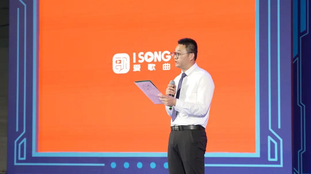 愛歌曲音樂平臺音樂總監林嘉欣女士致辭 活動現場,文藝演出節目層出不窮,全國各地音樂界老師也通過VCR表示自己的祝賀,原唱歌手林輝、何珺潔對活動主題曲“我把家鄉唱給你聽”深情演繹,隨后活動正式開啟。