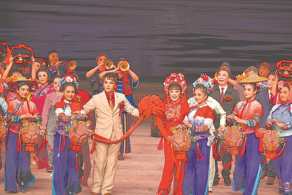 演員們的演繹飽含深情。 泉州市高甲戲傳承中心供圖 2023年12月29日,北京國(guó)家大劇院,2024年新年戲曲晚會(huì)在此精彩上演。黨和國(guó)家領(lǐng)導(dǎo)人同首都各界群眾歡聚一堂,一起觀看演出,喜迎新年的到來(lái)。 作為我省唯一入選節(jié)目,現(xiàn)代高甲戲《圍頭新娘》晉京獻(xiàn)演。這部由泉州市高甲戲傳承中心創(chuàng)排、源自真實(shí)兩岸故事、演繹兩岸同胞數(shù)十年“雙向奔赴”的現(xiàn)代劇目,在首都舞臺(tái)上一亮相,就引得滿堂彩。 呈現(xiàn)兩岸融合發(fā)展畫卷 “參加如此高規(guī)格、高層次的演出,在高甲戲劇種發(fā)展史上尚屬首次。對(duì)于《圍頭新娘》這個(gè)劇目來(lái)說(shuō),是一次難得的打磨提升的機(jī)會(huì)。”1日,從北京率隊(duì)歸來(lái)的泉州市高甲戲傳承中心主任周杰俊說(shuō),這是泉州高甲戲第一次亮相新年戲曲晚會(huì)舞臺(tái)。 今年的新年戲曲晚會(huì)名家薈萃,15個(gè)參演作品中,傳統(tǒng)劇目和新創(chuàng)佳作交相輝映,展現(xiàn)新時(shí)代戲曲藝術(shù)傳承發(fā)展的繁榮氣象,唱響逐夢(mèng)新征程的時(shí)代凱歌。為了凸顯地方劇種特色,泉州高甲戲傳承中心精心挑選了《圍頭新娘》中“海上婚禮”選段。 “這是一場(chǎng)非常有代表性的選段,戲劇情節(jié)豐富動(dòng)人、舞臺(tái)氛圍熱鬧溫馨,融合了閩臺(tái)兩岸文化風(fēng)貌、民俗風(fēng)情,不僅劇種特色鮮明,鄉(xiāng)土氣息濃郁,還以完美的舞臺(tái)呈現(xiàn),展示了兩岸融合發(fā)展的美麗畫卷。”周杰俊說(shuō)。 為了拿出最佳效果,80多人的演出團(tuán)隊(duì)提前半個(gè)月就進(jìn)京籌備彩排。“很多體現(xiàn)泉州特色的道具,像彩扎花燈、漆籃、簪花圍、惠女服飾等,我們都是從泉州帶去的。”周杰俊說(shuō),在排演過(guò)程中,晚會(huì)總導(dǎo)演郭小男為了更好地呈現(xiàn)地方特色,還特地調(diào)整了舞臺(tái)吊景,展示泉州紙?jiān)簟!秶^新娘》也成為整場(chǎng)晚會(huì)中唯一啟用舞美吊景的劇目。 一同參演2024年新年戲曲晚會(huì)的京劇表演藝術(shù)家孟廣祿說(shuō),高甲戲有300多年歷史,給廣大觀眾扎下了藝術(shù)的根芽。他聽(tīng)說(shuō)高甲戲今年要來(lái)北京演出,特別預(yù)祝劇團(tuán)在京演出成功。川劇表演藝術(shù)家沈鐵梅評(píng)價(jià)高甲戲“非常有特色”,也期待下一次看到全本的《圍頭新娘》。 《圍頭新娘》的演出之所以反響熱烈、好評(píng)如潮。在周杰俊看來(lái),一是因?yàn)閮砂额}材的故事“接地氣”——?jiǎng)≈械娜宋铩蚨味加性停巹 ?dǎo)演等主創(chuàng)力求在真實(shí)的基礎(chǔ)上進(jìn)行藝術(shù)創(chuàng)作,使劇情十分打動(dòng)人;二是因?yàn)楦呒讘蚴情}南語(yǔ)方言區(qū)最主要的戲曲劇種之一,首批入列國(guó)家級(jí)非物質(zhì)文化遺產(chǎn),劇目呈現(xiàn)的閩南語(yǔ)、鄉(xiāng)土氣息、風(fēng)俗人情以及表演程式、唱腔曲牌,都為兩岸民眾所喜聞樂(lè)見(jiàn)。兩岸一脈相承的文緣,在劇里得到淋漓盡致的展現(xiàn)。 此外,高甲戲在全國(guó)348個(gè)地方劇種中特色顯著,因而,當(dāng)現(xiàn)代題材用閩臺(tái)兩地最具共鳴的藝術(shù)形式在全國(guó)舞臺(tái)上展現(xiàn)時(shí),就成為突破地域的文化符號(hào),得到廣泛而深沉的情感共鳴。 大小舞臺(tái)上打磨三年多 《圍頭新娘》講述了與金門隔海相望的泉州圍頭村從“炮戰(zhàn)第一村”發(fā)展成“兩岸通婚第一村”的故事。該劇以實(shí)現(xiàn)兩岸通郵、通商、通航,再到通婚、通水為背景,描述激蕩在圍頭的兩岸婚戀熱流,兩岸人民從“冤家變親家”攜手共建家園的傳奇。 在進(jìn)京演出前,《圍頭新娘》已經(jīng)創(chuàng)排、打磨了三年多時(shí)間。該劇曾入選2021年度國(guó)家藝術(shù)基金資助項(xiàng)目、福建省舞臺(tái)藝術(shù)精品工程重點(diǎn)劇目。 不過(guò),在此之前,劇團(tuán)已經(jīng)多年沒(méi)有創(chuàng)排過(guò)現(xiàn)代戲了。因而,從立項(xiàng)之初,省市各相關(guān)部門都非常重視,請(qǐng)來(lái)了全國(guó)和省里的導(dǎo)演、編劇等名家擔(dān)任主創(chuàng)團(tuán)隊(duì),遵循“守正創(chuàng)新”藝術(shù)創(chuàng)作原則,泉州市高甲戲傳承中心也是舉全團(tuán)之力來(lái)打造這部戲。 從2021年11月泉州市第34屆戲劇會(huì)演首演至今,《圍頭新娘》已演出80多場(chǎng)。“我們既在全國(guó)地方戲劇展演、泉州市戲劇會(huì)演等大舞臺(tái)上演出,也在村鎮(zhèn)街道和沒(méi)有布景的舞臺(tái)上演過(guò),都是為了磨戲。”周杰俊說(shuō),泉州是“閩南戲窩子”,大家都鉚著一股勁,一定努力把這部戲打造成一個(gè)能夠代表泉州、反映時(shí)代的精品劇目。 文化使者促進(jìn)兩岸交流 構(gòu)思之初,《圍頭新娘》就立足于傳遞海峽兩岸血濃于水的親情,主創(chuàng)團(tuán)隊(duì)多次到圍頭村采風(fēng)。“整部戲以送炮彈、送婚姻、送水為線索,這也是兩岸同胞往來(lái)越來(lái)越頻繁的寫照。”周杰俊說(shuō)。 作為兩岸文化交流的重要“使者”,泉州市高甲戲傳承中心參與過(guò)很多兩岸交流的“重要時(shí)刻”:2000年,劇團(tuán)與金門高甲戲赴福建觀摩團(tuán)舉辦高甲戲藝術(shù)表演座談和表演觀摩交流;次年,應(yīng)金門城隍