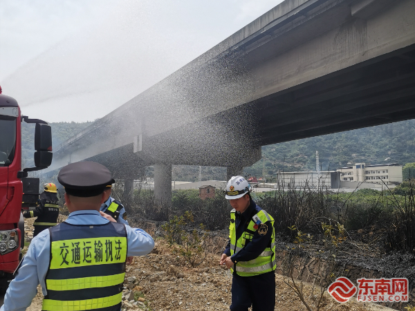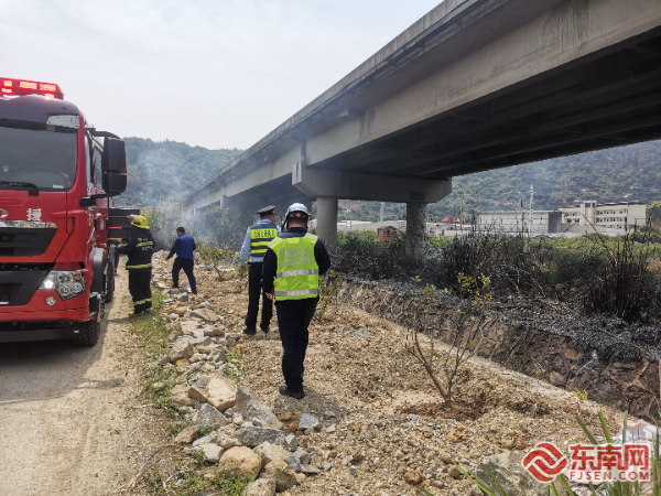東南網4月11日訊(通訊員 栗振文 黃婕琳)4月9日上午11時許,寧德高速執法支隊寧德西中隊執法人員進行日常巡查時,發現甬莞高速七都溪大橋路側草叢突發火情,現場濃煙彌漫,火勢隨風擴散。周邊存在干草及易燃建材,不及時控制恐危及橋梁結構及周邊居民安全。