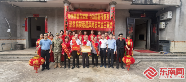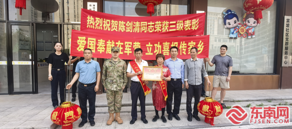 送喜報 東南網5月6日訊(通訊員 曾德喜 李琳 文/圖)為弘揚擁軍優屬的光榮傳統,營造軍屬光榮的濃厚氛圍,近日,莆田市城廂區退役軍人事務局聯合區人武部、街道武裝部、退役軍人服務站一同前往東海鎮、霞林街道,為3位榮立三等功(三級表彰)的軍人家庭送去立功喜報,與軍屬分享榮耀及喜悅。 每到一處,送喜報小組都向立功現役軍人家屬佩戴綬帶、送上立功喜報和慰問金,并與軍屬們親切交談,詳細了解他們的家庭生活狀況,對軍屬們的大力支持致以崇高敬意,感謝他們為國防建設培養優秀人才。