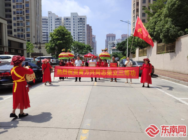 送喜報 東南網5月16日訊(通訊員 胡彰彬 文/圖)為進一步弘揚擁軍優屬優良傳統,增強軍人軍屬榮譽感,5月15日上午,莆田市秀嶼區退役軍人事務局聯合笏石街道工作人員,一同前往笏石街道吳黃村為榮立“三等功”的黃萬興家屬送來喜報和慰問金。 “咚鏘咚鏘咚咚鏘、咚咚鏘……”伴隨著一陣陣歡快而熱烈的鑼鼓聲,一條橫幅高高掛起,“熱烈祝賀黃萬興同志榮立三等功”字樣格外耀眼。送喜報隊伍一路敲鑼打鼓來到立功人員家中,為黃萬興父母佩戴“一人立功,全家光榮”綬帶和大紅花,將立功喜報、慰問金送到黃萬興父母手中,向他們表示衷心的祝賀,并送上黨和政府的深切關懷。 立功受獎的背后凝結著軍人矢志強軍的心血和汗水,承載著軍人使命高于生命的責任與榮譽。而深入開展送喜報活動,既是對軍人榮譽的尊崇,更讓軍人家屬感受到社會的關愛與尊重,進一步營造“一人立功,全家光榮”的濃厚社會氛圍,讓尊崇秀嶼更加尊崇,讓“光榮之家”更加光榮。 |