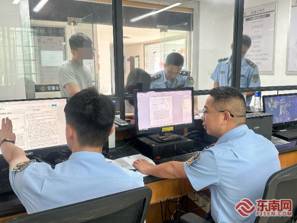 使用“閩執法”系統錄入信息。寧德高速執法支隊供圖