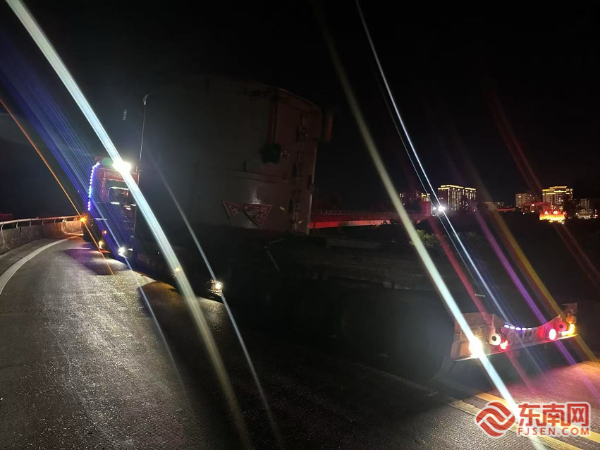 東南網7月3日訊(通訊員 黃婕琳 陳宗)近日,寧德高速執法支隊執法人員在例行夜間巡查至太姥山收費站出口匝道時,發現兩輛超寬大件運輸車輛因轉彎半徑不足,滯留在彎道處無法通行,導致后方車輛通行受阻,現場存在較大安全隱患。