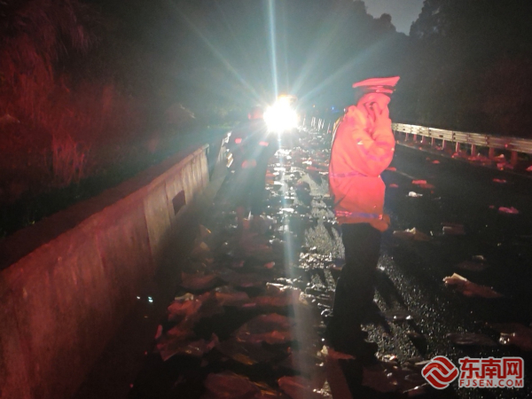 寧德高速執(zhí)法支隊(duì)柘榮中隊(duì)及時(shí)處置夜間貨物散落險(xiǎn)情