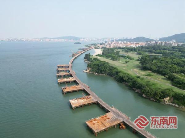 鰲冠特大橋已開(kāi)始搭設(shè)主梁施工支架(廈門(mén)市公路中心供圖)