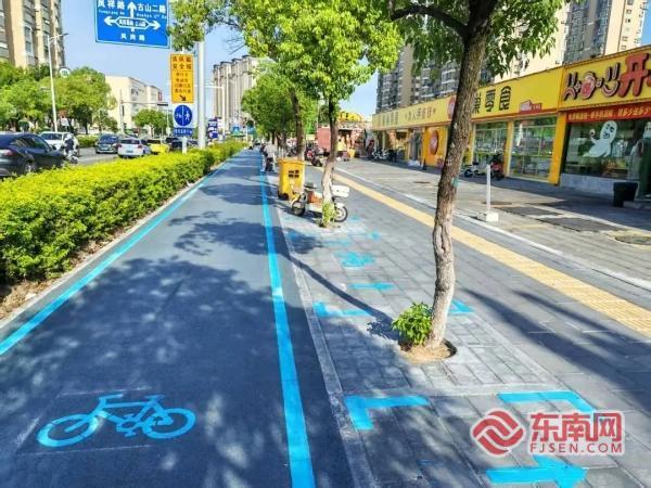“煩心路”如今搖身變為平整順暢的“舒心路”(廈門公路中心供圖) 公路部門介紹,此次改造對現狀非機動車道及人行道進行了全面挖除與新建:將非機動車道原有瀝青路面挖除,重新鋪設彩色透水水泥混凝土路面;把人行道原有的不透水條紋步道磚替換為透水磚;拆除綠化帶靠近非機動車道一側的隔離矮護欄,以增加路面寬度。針對人行道盲道缺失、緣石坡道設置不規范的問題,改造中也進行了專項調整——通過降低緣石坡道坡口處人行道及路緣石高度,使其與非機動車道保持平齊,并加長單面坡緣石坡道長度,確保坡度平緩,既滿足無障礙通行需求,又提升了騎行舒適性。 結合區域內實際的非機動車停放需求,公路部門還對新建路面的非機動車道停車位進行了重新劃分。停車位主要設置在樂海城市廣場及古山夜市路段,通過利用硬化綠化帶或在人行道樹池之間規劃車位,并采用淺藍色熱熔反光材料施劃停車位標線及地面標記。醒目的色彩不僅讓區域環境更規整有序,還進一步增強了交通引導與警示作用。 此次改造工程成果顯著,共計新建鋪裝人行道面積約1340.17平方米,新建鋪裝非機動車道面積約1264.13平方米,調整鑄鐵井蓋、方形井蓋等共計20套。升級改造后的鳳嶺路慢行空間,路面平坦美觀,交通標識清晰,實現了人車各行其道,通行安全性與舒適度得到顯著提升,為前往周邊商圈購物的市民打造了“步行有道、騎行順暢、安全舒適”的優質慢行環境。 家住附近小區的市民蔡先生對此改造贊不絕口:“以前這一段有破損地磚,路過需要注意躲避,最近發現改造完工了,騎車經過都感覺舒坦多了,路面也變得整潔美觀。周邊還規劃了非機動車停車位,交通秩序好很多。” |