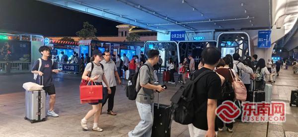 高鐵南平市站前,乘客前往公交站乘車 “原以為凌晨下高鐵要‘摸黑等車’,沒想到出了站就見亮堂堂的指引牌,工作人員還主動幫提行李,真的很暖心!”10月1日凌晨1時56分,從廈門返鄉的李女士推著行李箱,順利坐上了K2路公交,話語里滿是安心。此刻的高鐵南平市站,公交首末站燈火通明,出租車候客區按“一米線”有序排隊,網約車專用上下客點標識清晰。前往武夷山景區的游客王先生也坦言:“特意提前查了接駁信息,沒想到現場比線上更便捷,接駁公交直接對接景區,省去了中轉麻煩。”