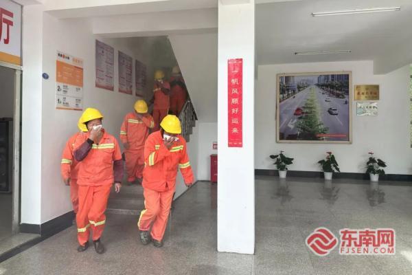消防演練中模擬災(zāi)情來臨時(shí)人員有序撤離(廈門公路中心供圖)