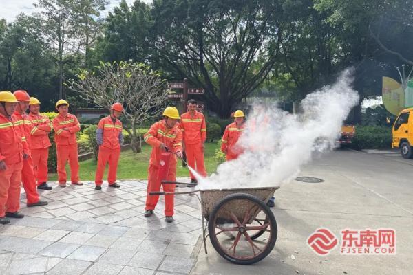 參演人員運(yùn)用滅火器對(duì)火源撲救(廈門公路中心供圖)