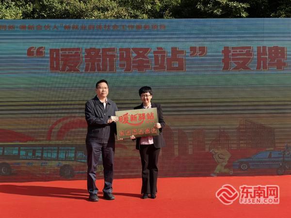 “暖新驛站”牌匾授牌(東南網記者 劉瑋 攝) 上午9時,儀式在溫馨的宣傳片中拉開帷幕。中共廈門市委社會工作部領導向廈門公交集團代表授予“暖新驛站”牌匾,現場掌聲陣陣,標志著這一惠民項目正式落地。公交集團代表表示,作為扎根廈門的國有企業,集團始終積極履行社會責任,將依托自身資源優勢,為新就業群體打造奔波路上的“暖心驛站”。 隨后,三聲清脆的巴士鳴笛響起,“暖新巴士”親子研學計劃正式發車。20對新就業群體親子家庭攜手登車,開啟一天精彩的城市探索之旅。
