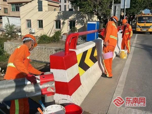 公路交安設施翻新(廈門公路中心供圖) 東南網12月4日訊(本網記者 劉瑋 通訊員 林阿娜 何榮欽)近期,廈門翔安公路部門集中開展公路交安設施翻新工作,對轄區內部分橋梁護欄、涵帽等進行油漆刷新,既改善了路域環境顏值,又強化了安全防護與警示功能,為市民出行筑牢安全屏障。 據悉,由于運行時間較長,受自然環境侵蝕、塵土污染及車輛碰撞等因素影響,國道324線、翔安南路、翔安大道等路段的部分橋梁護欄、涵帽出現漆面脫落、風化褪色、破損不清、顏色斑駁等問題,不僅影響路容路貌,還削弱了對行人和行車的警示作用,存在安全隱患。 自11月下旬起,翔安公路部門組織專業養護人員啟動集中整治。為確保刷新質量與效果,作業嚴格遵循規范流程:針對橋梁護欄,養護人員先用砂紙、鋼刷等工具打磨銹蝕、起皮部分,再選用黑黃相間的醒目漆料全面涂刷,確保表面光滑均勻,無漏涂、流掛、露底或皺皮等情況;對于涵帽,養護人員按照“扶正埋實、精準刷新”的要求,對文字圖案進行細致描涂,保障標識清晰醒目、色澤均勻。 此次交安設施煥新行動成效顯著,已完成國道324線內田橋、桐梓橋等6座橋梁護欄的刷新工作,作業面積約215平方米;同時對國道324線、翔安大道等路段沿線約620平方米的褪色涵帽進行了全面維護。翻新后的交安設施不僅扮靚了路容路貌,其強化的防護功能與警示效果更為行車安全增添保障——夜間通過反光可清晰勾勒道路輪廓,有效提示前方路況,為過往司乘人員提供更清晰的道路指引。 |