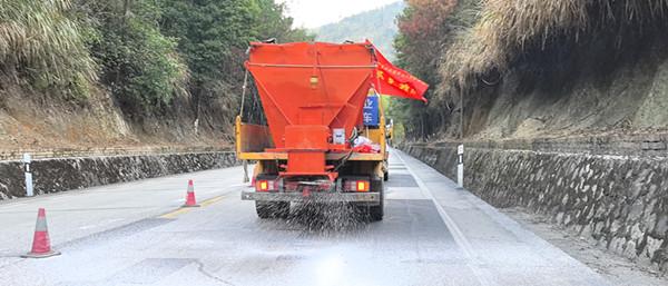 撒融雪劑。 東南網(wǎng)1月7日訊(通訊員 郭鈞 李宇杰 季蓉 文/圖)近日,氣溫驟降,1月6日下午,三元公路分中心組織機材、工程、路產(chǎn)安全、工會等部門,在G534線中村石馬岬隧道易結(jié)冰路段,以“實戰(zhàn)為導向”開展抗冰凍應急演練,同步完成易結(jié)冰災害點專項檢查,用專業(yè)部署與快速響應筑牢冬季公路安全暢通防線。 此次演練模擬石馬岬隧道路段受強降溫影響,路面出現(xiàn)結(jié)冰險情,影響過往車輛通行安全。上午9時許,中村公路站巡查人員在日常巡檢中發(fā)現(xiàn)路面結(jié)冰跡象后,立即向分中心報告現(xiàn)場情況,包括結(jié)冰范圍、路面狀況及交通影響等關(guān)鍵信息。分中心接到報告后迅速研判,當即啟動冰凍災害應急處置預案,下達搶險指令。 接到指令,搶險隊伍迅速集結(jié),融雪撒布機、養(yǎng)護車輛等立即趕赴現(xiàn)場,各作業(yè)小組分工協(xié)作、高效聯(lián)動。公路站職工熟練地布設錐標、立好警示標識、按規(guī)范劃定安全作業(yè)區(qū)域,路產(chǎn)人員引導過往車輛減速慢行。工程技術(shù)人員認真勘察“結(jié)冰”路段情況,指導除冰作業(yè)組采用“機械撒布+人工清掃”相結(jié)合的方式,先通過撒布機均勻撒布融雪劑,加速冰層消融,再行清掃。整個演練過程中各部門互相有序配合,從險情上報、預案啟動到現(xiàn)場處置、道路恢復,全程銜接順暢,充分展現(xiàn)了搶險隊伍在極端天氣下的快速響應能力與協(xié)同作戰(zhàn)水平。
