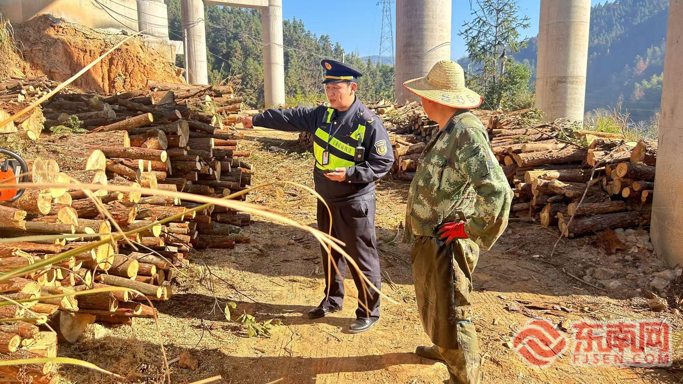 執法人員向當事人進行解釋。高速公路行政執法支隊供圖 發現隱患后,執法員迅速聯合石床村村委趕赴現場調查,很快找到了堆放木材的當事人。經查,該當事人是村里的脫貧戶,全家以伐木、售賣木材為生,這些木材是其主要生計來源。因缺乏合適存儲場地,他心存僥幸占用橋下閑置空間,并未意識到該行為已違反相關法律法規。
