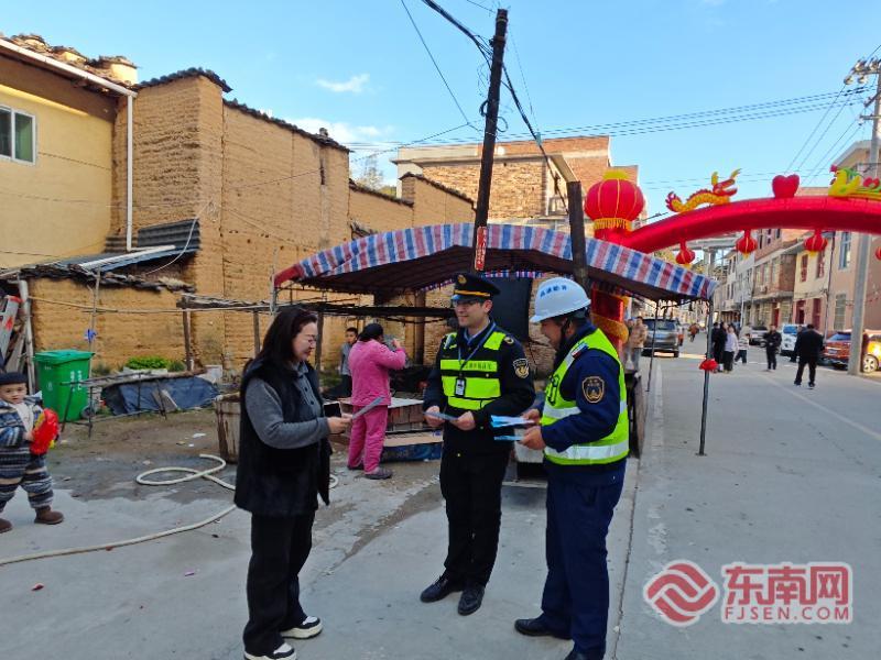 執(zhí)法人員在曹爐村發(fā)放宣傳單。寧德高速公路行政執(zhí)法支隊(duì)供圖