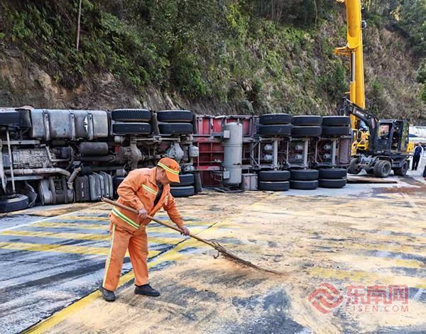 清理機油撒漏。 2月8日14時國道G534線明溪縣沙溪鄉小眉溪路段發生貨車側翻機油泄漏事故,半幅車道受阻。明溪公路分中心應急體系再次高效運轉,一線人員第一時間抵達現場,經過4個半小時連續奮戰,泄漏油污被徹底清除,受阻路段于當日18時提前恢復雙向通行,有效避免了春運晚高峰可能出現的長時間擁堵。 2月6日傍晚6時,國道G534線明溪縣沙溪鄉梓口坊村路段一輛貨車在行駛過程中突發后門爆裂,導致稀土散落路面。明溪公路分中心接報后立即啟動預案,就近派出沙溪公路站養護人員火速趕往現場馳援。現場迅速制定科學處置方案,由鏟車快速清除大面積散落物,水車進行高壓深度清洗,養護人員緊隨其后完成細節清理與收尾。通過多維度、高效率緊密配合,原本復雜的污染路面在2小時內被清理干凈,恢復正常通行。 為保障春運,三明公路部門全面提升巡查頻次與精度,對重點路段、橋梁和隧道進行不間斷監測。嚴格執行24小時值班與領導帶班制度,確保信息暢通、指揮有力。同時,加強與交警、氣象等部門的聯勤聯動,提前研判風險,做到突發情況“第一時間發現、第一時間上報、第一時間處置”,將隱患消除在萌芽狀態。 |