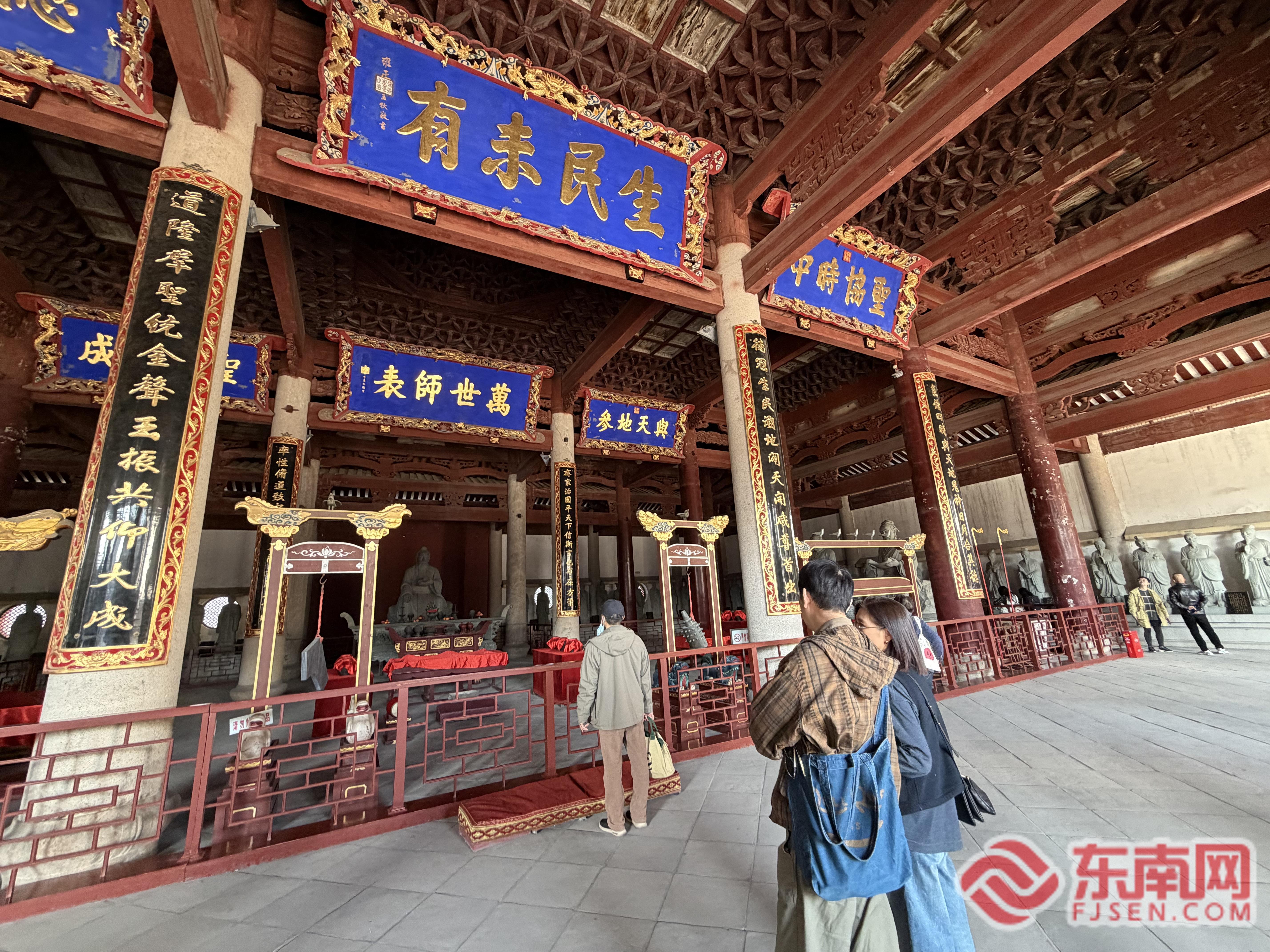 更難得的是,福州文廟始終扮演著兩岸文化“連接器”的角色。清代臺(tái)灣士子跨海來(lái)福州科考,必到文廟拜孔?,F(xiàn)存的科舉文物、延續(xù)的祭孔禮儀,與臺(tái)灣孔廟一脈相承。就像來(lái)自臺(tái)灣的游客林敬正所說(shuō),這些實(shí)物是“兩岸文脈相連的實(shí)證”。在當(dāng)下兩岸文化交流不斷深化的背景下,文廟的重新開(kāi)放不只是多了一個(gè)參訪地,更是為年輕人提供了解共同根脈的窗口。當(dāng)臺(tái)灣學(xué)子看到先輩曾跪拜的孔子像、曾翻閱的科舉典籍,文化認(rèn)同便不再是抽象概念,而是有具體歷史與情感支撐的共鳴。