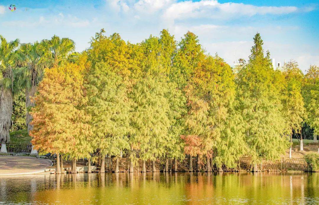 隨著氣溫下降,園博苑內的落羽杉開始“變裝”,正在完成翠綠、金黃、橘紅的漸變,色彩濃郁而豐富~