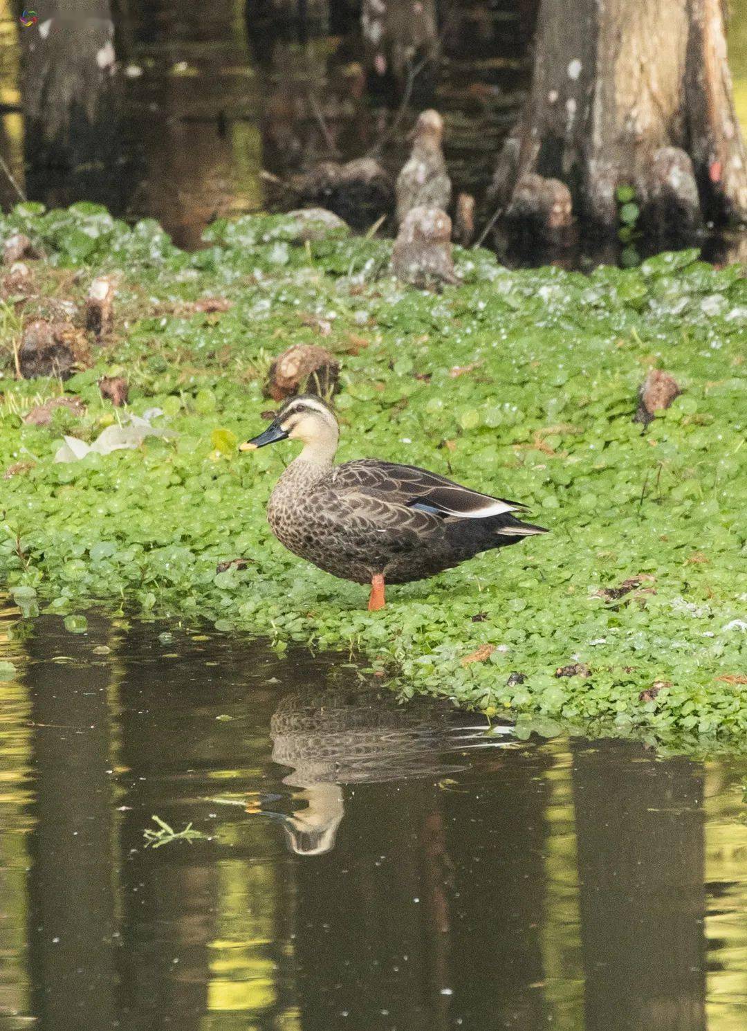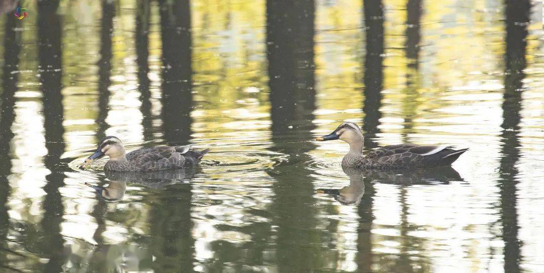 你瞧,這群在水中暢游嬉戲的斑嘴鴨為這童話般的境界更添了幾許靈動色彩。