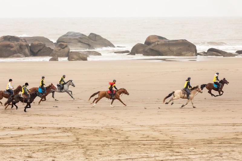 1號濱海風(fēng)景道——福建·長樂“海騎英雄會”活動現(xiàn)場(主辦方供圖) 本次活動以海騎為主題,以海邊騎馬、騎游為重點(diǎn)內(nèi)容,創(chuàng)造主客共享的旅居生活,以此打造“濱海網(wǎng)紅打卡地”和“爆款風(fēng)景道”,通過創(chuàng)建1號濱海風(fēng)景道“文化+體育+旅游”時尚新名片,助力推動福建濱海旅游高質(zhì)量發(fā)展,提升和擴(kuò)大“清新福建”“福文化”品牌魅力,激發(fā)福建旅游市場新活力。 福建省文化和旅游廳一級巡視員吳立官在致辭中說道,在過去幾年里,福建文化和旅游部門始終用堅(jiān)定信念和意志,在疫情造成的不確定環(huán)境中,為廣大游客尋找、創(chuàng)造新的旅游方式。除了翻越雪山草原,在濱海騎馬更有一番風(fēng)味。福建海岸線長3752公里,從北到南風(fēng)景多樣,許多沙灘都是騎馬的好地方,也是投資海騎這個旅游新業(yè)態(tài)的上好選擇。 活動現(xiàn)場,騎師們策馬揚(yáng)鞭、車隊(duì)馳騁海灘、帆船隊(duì)揚(yáng)帆共同起航揭開活動序幕。海騎競速表演賽火熱上演,來自海騎、機(jī)車、馬術(shù)等俱樂部及戶外運(yùn)動愛好者齊聚一堂,在賽馬競速賽、繞樁表演賽、趣味海騎競速賽中輪番較量,賽馬、機(jī)車、越野車并駕齊驅(qū)的精彩畫面,呈現(xiàn)了一幕幕速度與激情的瞬間。