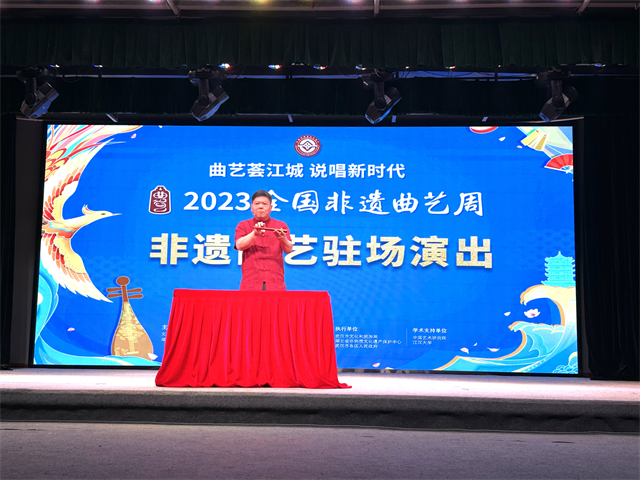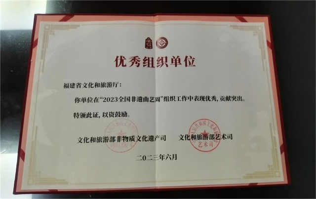 6月9日至15日,由文化和旅游部、湖北省人民政府主辦的“曲藝薈江城 說唱新時代”2023全國非遺曲藝周在武漢隆重舉辦。福建省福州評話、福州伬藝、南平南詞、錦歌、東山歌冊、答嘴鼓、講古等7個曲藝類國家級非遺代表性項目精彩亮相,為江城及全國各地的曲藝同行們獻上一道獨具特色的曲藝盛宴。省文化和旅游廳二級巡視員張立峰、非遺處相關負責人參加了開幕式和座談交流會。 6月12日至15日,王素華,黃春慧兩位國家級非遺代表性傳承人領銜的30人福建展演團隊進行了11場展演。團隊進戲院、進校園、進社區、進景區、進機關,與當地群眾交流互動,與全國同行同臺展演,展示福建曲藝水平,傳播福建非遺聲音,贏得滿堂喝彩,受到一致好評。
