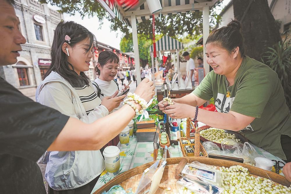 10月5日,一場(chǎng)由軟木畫、茉莉花、面人、風(fēng)味小吃等非物質(zhì)文化遺產(chǎn)項(xiàng)目組成的集市,在福州三坊七巷受到市民和游客熱捧,讓大家在節(jié)日期間感受福州非遺文化的獨(dú)特魅力。圖為游客在挑選茉莉花手串。福建日?qǐng)?bào)通訊員 謝貴明 攝 金秋時(shí)節(jié),中秋國(guó)慶“雙節(jié)”聯(lián)動(dòng),節(jié)日氛圍格外濃厚。人們或與親朋好友歡聚一堂,或到紅色景區(qū)瞻仰朝圣,或攜全家老小助威亞運(yùn)……豐富多彩的文化活動(dòng)令假期洋溢著家國(guó)溫情。 情懷激蕩 紅色,是國(guó)慶節(jié)主色調(diào)。在革命圣地陜西延安,全國(guó)各地游客紛至沓來。 記者在楊家?guī)X革命舊址看到,講解員聲情并茂地講述革命歷史,游客駐足聆聽、神情動(dòng)容。 除了傳統(tǒng)的參觀體驗(yàn),近年來,延安創(chuàng)新挖掘紅色資源,一系列紅色演藝項(xiàng)目吸引了眾多游客。 “《延安保育院》等舞臺(tái)劇在這個(gè)假期場(chǎng)場(chǎng)爆滿、一票難求,充分體現(xiàn)了沉浸式紅色文化體驗(yàn)在傳承延安精神、感染當(dāng)代觀眾方面的獨(dú)特價(jià)值。”陜旅集團(tuán)延安公司總經(jīng)理助理馬男說。 這個(gè)“雙節(jié)”假期,恰逢亞運(yùn)會(huì)在浙江杭州舉行,每一個(gè)奪冠時(shí)刻、每一次國(guó)歌響起,都激蕩起熾熱的愛國(guó)情。 香港青年李淑嫻和朋友早早做好了計(jì)劃:一人負(fù)責(zé)搶亞運(yùn)會(huì)門票,一人負(fù)責(zé)搶香港到杭州的高鐵票,一人負(fù)責(zé)做杭州游玩攻略。10月1日,3位小伙伴抵達(dá)亞運(yùn)場(chǎng)館“大蓮花”,開啟了自己的亞運(yùn)之旅。 在亞運(yùn)場(chǎng)館“大小蓮花”附近的地鐵站、街道廣場(chǎng),滿是拍照“打卡”的游客。 從長(zhǎng)春來到杭州度假的彭女士說:“前兩天去了西湖、西溪,專門定在國(guó)慶這一天來看‘大小蓮花’,雖然沒有買到亞運(yùn)會(huì)門票,但買些亞運(yùn)文創(chuàng)產(chǎn)品很有紀(jì)念意義,在賽場(chǎng)外聽到國(guó)歌奏響也感到很自豪?!?/p> 國(guó)風(fēng)勁吹 位于蘇州古城的平江歷史文化街區(qū)熱鬧非凡,假期前6日,這里累計(jì)客流量超80萬人次,許多年輕人著漢服、梳發(fā)髻前來。 平江路大儒巷38號(hào)經(jīng)過修繕,成為一個(gè)對(duì)外開放的特色文化空間。游客們?cè)诠派畔愕脑郝渲新犜u(píng)彈、看演出、品非遺,感受江南風(fēng)情。 在大儒巷設(shè)立的桃花塢木版年畫展示展銷中心,非遺傳承人與游客現(xiàn)場(chǎng)互動(dòng)很是熱鬧。帶著孩子參與互動(dòng)的浙江游客王女士表示,這些年畫配色好看,寓意也好,孩子在互動(dòng)體驗(yàn)中可以加深對(duì)非遺項(xiàng)目的認(rèn)識(shí)和對(duì)傳統(tǒng)文化的了解。 “雙節(jié)”期間,北京市民宋慈選擇帶全家來到河南鄭州,感受中原大地的厚重文明。 作為文化和旅游部節(jié)前發(fā)布的全國(guó)旅游演藝精品項(xiàng)目之一,鄭州的“只有河南·戲劇幻城”通過高科技手段把黃河文化和河南歷史創(chuàng)造性地濃縮成一場(chǎng)高水準(zhǔn)的演出,擁有總長(zhǎng)近700分鐘的不重復(fù)劇目、56個(gè)變幻無窮的情景空間。今年假期,主辦方還策劃推出了“花樣告白祖國(guó)”特別節(jié)目和“我愛你中國(guó)”燈光秀主題活動(dòng),客流量創(chuàng)新高,高峰期日均觀劇達(dá)12萬人次。 市場(chǎng)紅火 中秋節(jié)、國(guó)慶節(jié)期間歷來是消費(fèi)旺季,逛書店、看戲劇、聽演唱會(huì)成為人們文化消費(fèi)的重要組成部分。在廣東,沉浸式喜歌劇《蘋果之夜》開票后即“秒光”。 “雙節(jié)”期間,中外精品劇目輪番在廣州上演:上海歌劇院舞劇團(tuán)的舞劇《嫦娥》、西班牙塞維利亞弗拉門戈舞蹈團(tuán)的舞劇《卡門》、國(guó)家京劇院的《龍鳳呈祥》《穆桂英掛帥》…… “我們想將傳統(tǒng)的、藝術(shù)的歌劇演出變得更有趣,吸引更多觀眾走進(jìn)劇院?!薄短O果之夜》藝術(shù)總監(jiān)、星海音樂學(xué)院歌劇中心主任楊巖說,“希望通過我們的努力,讓演藝市場(chǎng)更加繁榮。” 有人流連城市,有人追尋遠(yuǎn)方。不久前,“普洱景邁山古茶林文化景觀”成為我國(guó)第57項(xiàng)世界遺產(chǎn)。假期中,這個(gè)云南新晉世界遺產(chǎn)地人氣攀升,迎來申遺成功后的首個(gè)旅游打卡熱潮。據(jù)統(tǒng)計(jì),9月29日至10月4日,景邁山接待外來游客超過1.5萬人次。 來自四川成都的游客劉亮特意為自己安排了“茶香之旅”,在景邁山待了3天。他感慨:“茶融入了這里人們的日常生活,讓我感受到人茶共生的獨(dú)特文化傳承?!?/p> |