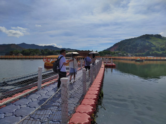 主播團在水上觀光垂釣平臺直播 在水上觀光垂釣平臺,主播們體驗了泛江游船的樂趣。“在這里可以遠眺燈塔,觀賞尤墩村的全貌,還有可供垂釣的小木屋,喜歡釣魚的朋友們一定要來打卡。”東南網主播丁迅為直播間的粉絲推薦道。