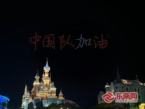 無人機表演編排出“中國隊加油”隊形。景區(qū)供圖