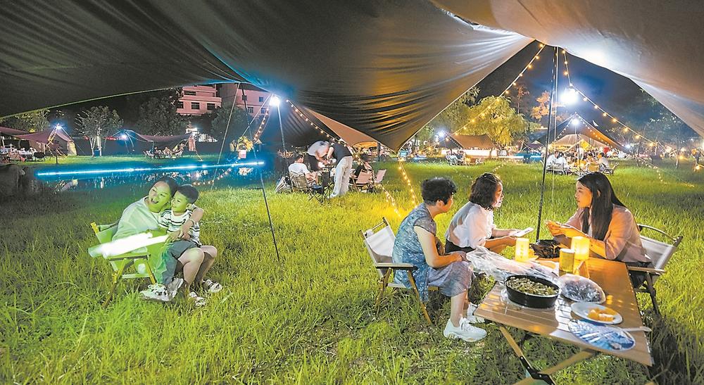 游客在兩萬多平方米的房車營地吃美食、喝啤酒、品茗茶、玩游戲,引燃假日文旅新熱潮。