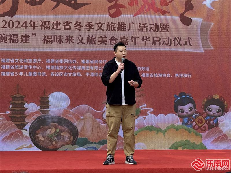 東南網12月29日訊(本網記者 莊宇婧)12月28日,由福建省文化和旅游廳、福建省委網信辦、福建省商務廳主辦的“來福建 享暖冬”2024年福建省冬季文旅推廣活動暨“一碗福建”福味來文旅美食嘉年華在福建省少年兒童圖書館啟動。 啟動儀式上,隨著緩緩掀開“熱氣騰騰”寓意“蒸蒸日上”的蒸籠,“一碗福建福味來”7個大字映入眼簾,正式開啟“來福建 享暖冬——2024 年福建省冬季文旅推廣活動暨‘一碗福建’福味來文旅美食嘉年華”的精彩序幕。