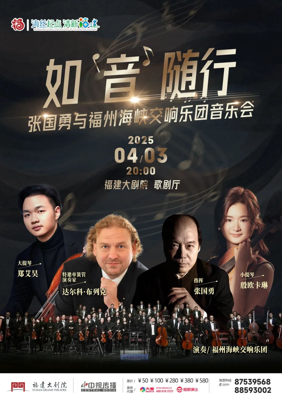 《如“音”隨行——張國勇與福州海峽交響樂團(tuán)音樂會》 時間: 4月3日 20:00 地點: 福建大劇院歌劇廳 演出單位: 福建省歌舞劇院、福州海峽交響樂團(tuán)
