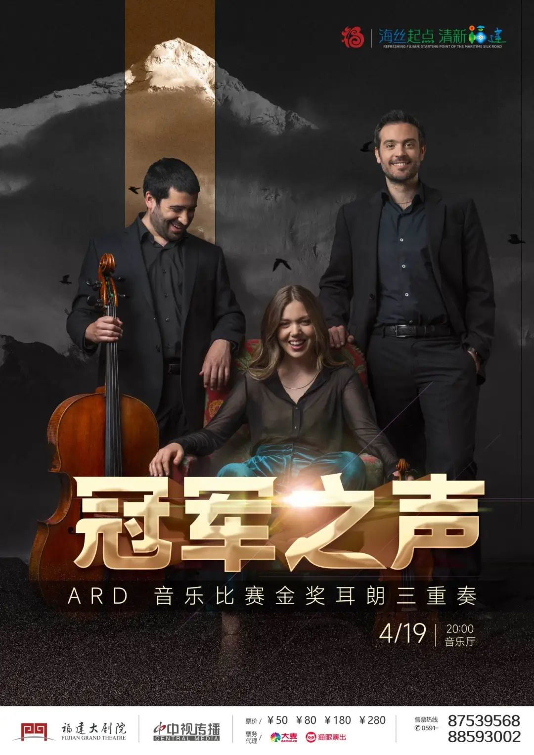 “冠軍之聲”ARD音樂比賽金獎耳朗三重奏 時間: 4月19日 20:00 地點: 福建大劇院音樂廳 演出單位: 小提琴家朱迪思·斯塔夫、大提琴家阿諾·羅維拉·巴斯孔特、鋼琴家馬爾科·桑納