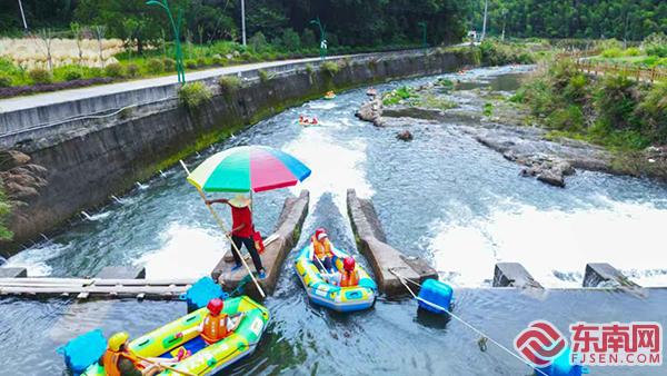 據(jù)介紹,庵杰鄉(xiāng)作為國家級生態(tài)鄉(xiāng)鎮(zhèn),依托汀江源頭天然優(yōu)勢,打造全程5公里的“天下客家第一漂”項目。項目歷經(jīng)十五個溪潭,六段險灘,四段田園風(fēng)光帶,一個溶洞,漂流全程約1.5小時左右。當(dāng)日,首批體驗者乘著橡皮艇順流而下,兩岸青山如黛,碧水潺潺,沿途自然景觀引得游客驚嘆連連。沿途的專業(yè)護(hù)漂團(tuán)隊,也讓游客在安全中盡享速度與激情。