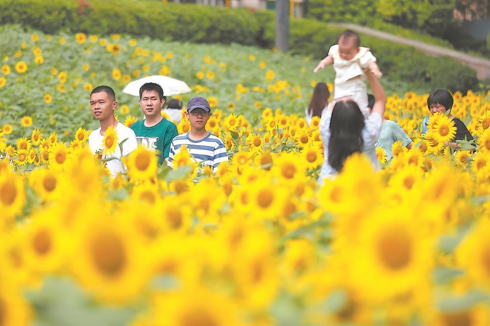 9月20日,位于福州市倉山區(qū)的福州花海公園,金燦燦的向日葵在陽光下盡情綻放,吸引市民前來打卡賞花,感受秋日花海美景。
