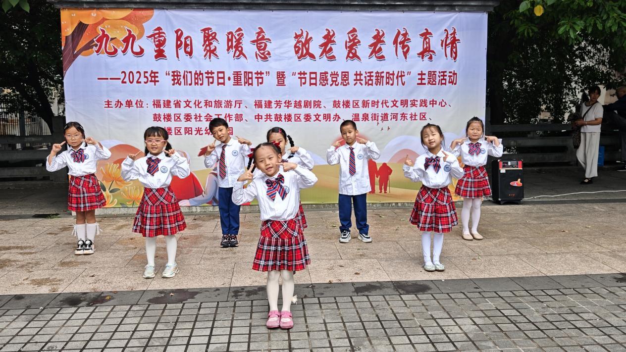 活動在陽光幼兒園小朋友們表演的《手指操——重陽節》中拉開序幕。孩子們用稚嫩的動作和燦爛的笑容演繹重陽文化,現場掌聲不斷。隨后,來自福建芳華越劇院的老師們帶來戲曲《碧玉簪》《送鳳冠》等經典選段,婉轉的唱腔、精美的服飾讓觀眾們沉浸其中,過足戲癮"。社區居民王奶奶感慨:在家門口就能看專業演出,真是重陽節最好的禮物!"