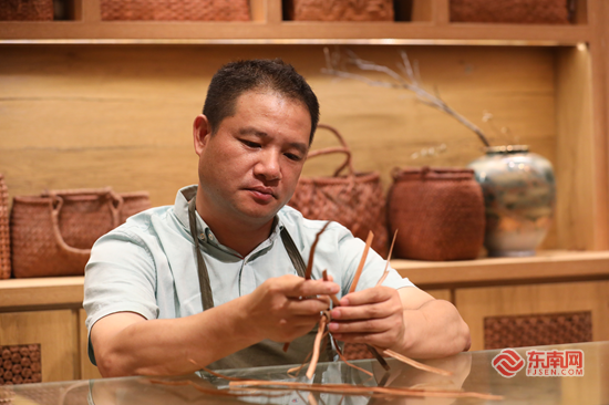 山葡萄藤編。永泰縣文化體育和旅游局 供圖 “非遺+”實(shí)現(xiàn)傳承新發(fā)展。“十四五”期間,永泰積極培育山葡萄藤編、永泰菜籃公、永泰李干、永泰蔥餅、山茶油熏鴨技藝、烤兔制作技藝、蓋洋紅等非遺產(chǎn)業(yè),年均總營收超過1000萬元,實(shí)現(xiàn)文化傳承與經(jīng)濟(jì)效益雙贏。
