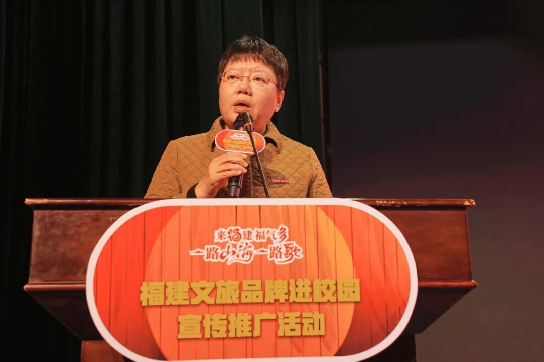 福建華南女子職業(yè)學(xué)院校長任建紅致辭 會(huì)上,福建華南女子職業(yè)學(xué)院校長任建紅致歡迎辭。她表示,學(xué)生們是這片土地文化傳承與發(fā)展的希望之星,通過這次活動(dòng),希望學(xué)生們可以更加深入地認(rèn)識(shí)福建的文化、自然和美食,增強(qiáng)對(duì)家鄉(xiāng)的熱愛和自豪感,為福建的發(fā)展貢獻(xiàn)自己的力量。同時(shí),希望學(xué)院師生能逐步培育文化自信,激發(fā)創(chuàng)新思維與實(shí)踐能力,多走出去,領(lǐng)略清新福建的魅力,帶回屬于華南特色的文旅故事。