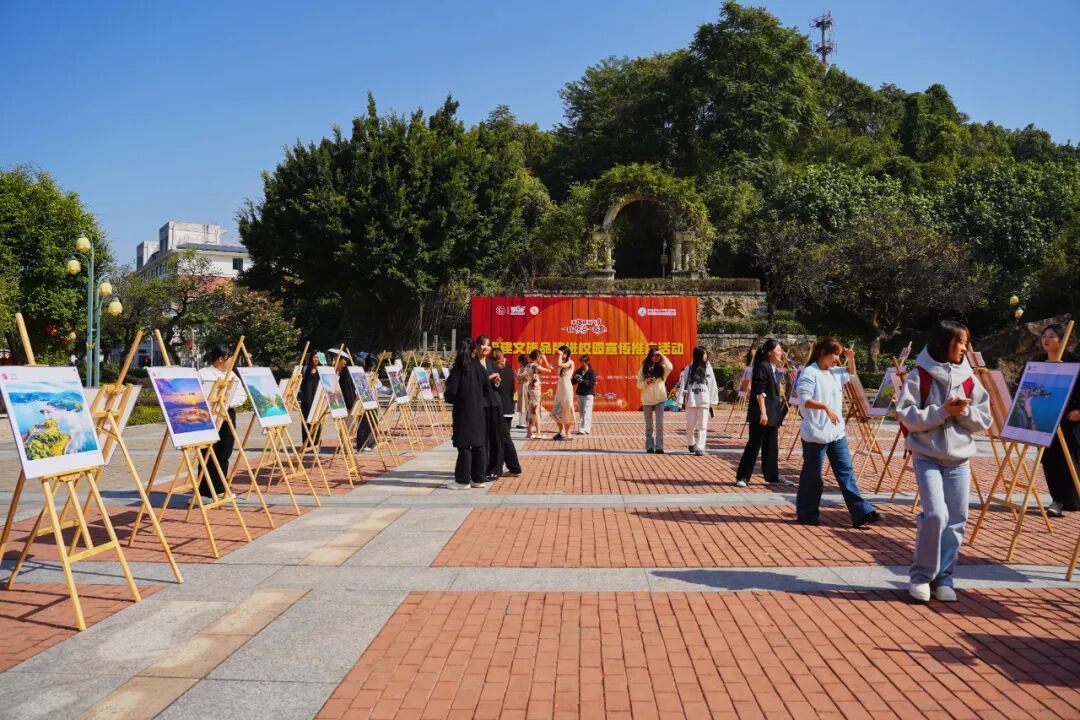 茶藝表演 同期舉辦的福建文旅攝影圖片展在學(xué)院余寶笙廣場(chǎng)展出,精選60幅展現(xiàn)福建自然風(fēng)光、人文景觀與民俗風(fēng)情的優(yōu)秀攝影作品,一幅幅光影佳作如同流動(dòng)的畫卷,讓師生們?cè)诜酱缰g領(lǐng)略福建的詩意之美。展覽現(xiàn)場(chǎng)還設(shè)置了文旅企業(yè)宣傳推廣展臺(tái),通過發(fā)放宣傳資料、掃碼送禮、互動(dòng)抽獎(jiǎng)、現(xiàn)場(chǎng)咨詢等形式,與師生們面對(duì)面交流,師生們積極參與,熱情高漲。