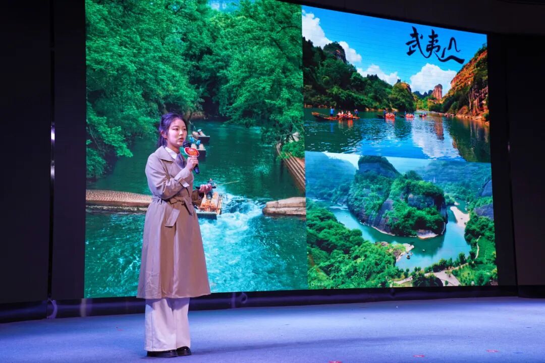旅游企業(yè)推介 活動(dòng)現(xiàn)場(chǎng),學(xué)院的專業(yè)老師化身“青春向?qū)А保ㄟ^沉浸式講解將福建各地市的主要旅游景點(diǎn)串聯(lián)在一起,向同學(xué)們生動(dòng)推介了福建特色旅游產(chǎn)品和資源線路;福鼎市太姥山旅游經(jīng)濟(jì)開發(fā)有限公司上臺(tái)推介“海上仙都”太姥山,誠摯邀請(qǐng)同學(xué)們攝影打卡、徒步追光、洞穴探秘;脫口秀演員們用幽默詼諧的語言分享旅行、校園趣事,現(xiàn)場(chǎng)笑聲不斷、掌聲連連,魔術(shù)脫口秀更是將氣氛推向高潮,這種年輕人喜聞樂見的形式,讓文旅推介更接地氣、更富感染力;學(xué)院旅游服務(wù)系的學(xué)生還帶來服飾禮儀走秀展示《云裳翼步·制服華章》、茶藝表演《九曲流香》、《千年回響·國寶回家》等精彩的節(jié)目。