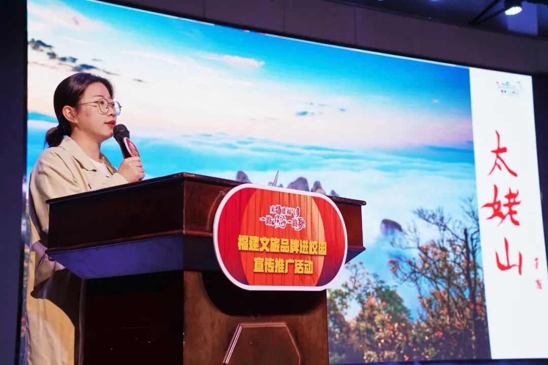 福建省旅游協(xié)會(huì)書記兼會(huì)長助理?xiàng)罨裰v話 福建省旅游協(xié)會(huì)書記兼會(huì)長助理?xiàng)罨裰v話。他表示,省旅游協(xié)會(huì)與省旅游宣傳中心聯(lián)合舉辦的福建文旅品牌進(jìn)校園活動(dòng)已成功連續(xù)舉辦四年。院校學(xué)子們是福建文旅未來的講述者、傳播者和建設(shè)者,他對(duì)學(xué)子們提出了要做一個(gè)“有情懷”“有本領(lǐng)”“有創(chuàng)意”的文旅人。他強(qiáng)調(diào),協(xié)會(huì)將一如既往地搭建平臺(tái)、鏈接資源,歡迎同學(xué)們畢業(yè)后投身文旅事業(yè),也期待大家在實(shí)習(xí)、實(shí)踐、創(chuàng)新創(chuàng)業(yè)中與協(xié)會(huì)攜手同行,共同助力福建文旅產(chǎn)業(yè)高質(zhì)量發(fā)展。