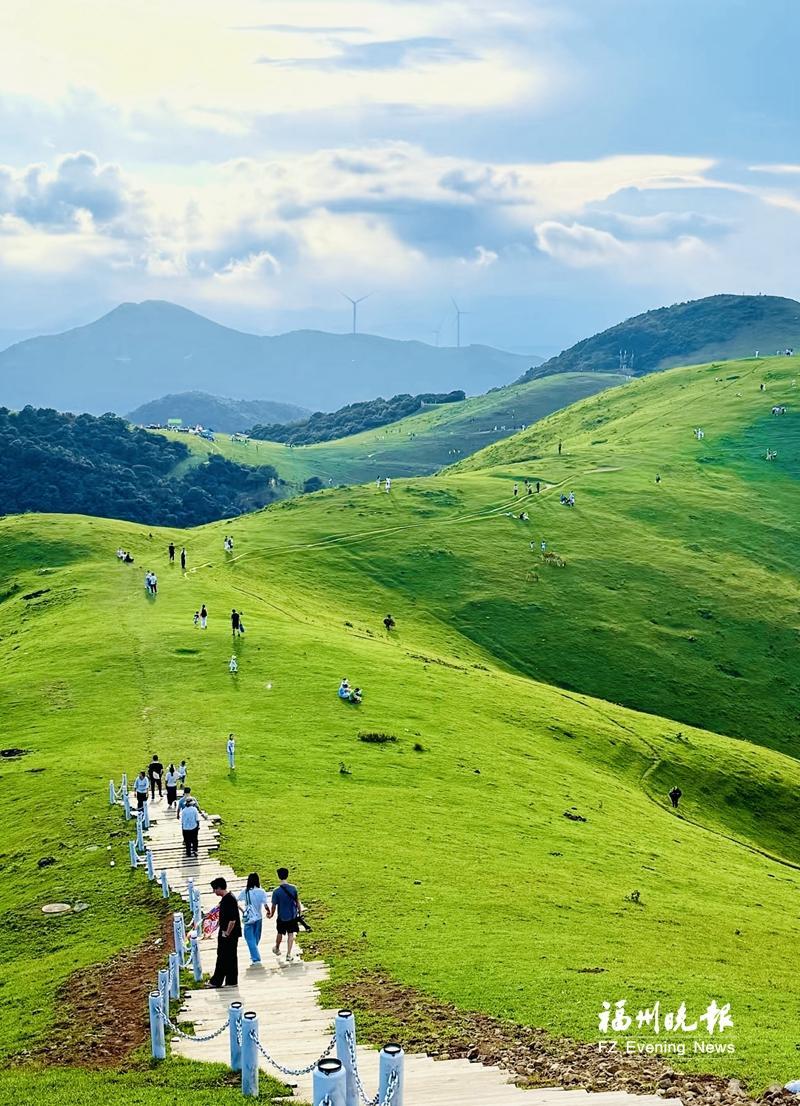 古堡式建筑群食菜厝。 盤活文旅資源 山水草原煥發新生機 最近,南嶺鎮再添浪漫新景——一條以愛情為主題的環湖步道在龍津湖畔亮相。 記者看到,湖面波光粼粼,步道兩側綠意蔥蘢,朱熹留下的“龍津”石刻與現代浪漫景觀相互輝映,成為福清文旅的新打卡點。 南嶺鎮擁有福州境內最大的高山草場,6500畝的遼闊草地與海拔633米的開闊視野造就了獨一無二的“登山即見海”景觀。 近年來,依托高山湖景、大姆山草原等自然資源,南嶺鎮持續加快文旅資源整合步伐。滑草、空氣大炮、云朵秋千等戶外項目,讓游客在山野間盡情釋放活力;山頂上的云間集露營地、大姆山觀景臺、風動石公園等新晉打卡點,為游客提供更多休閑體驗。 與此同時,南嶺鎮加快完善基礎配套,推進水電路網污提升工程,新建西溪生態停車場、游客服務中心、容園茶室、自然課堂等設施,通過打通山、水、村之間的串聯線路,構建“可漫步、可停留、可體驗”的旅游環境。 “從日落看到星空”是許多游客對南嶺的印象。今年南嶺又推出云間集露營地、望月橋、彩虹橋、容園茶室等新設施,為游客提供多層次旅游體驗。