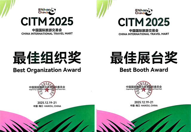 由文化和旅游部主辦的2025中國國際旅游交易會12月21日下午在海南國際會議展覽中心(海口)圓滿落幕。福建省文化和旅游廳“來福建福氣多 一路山海一路歌”主題展館,獲得了本次展會的“最佳組織獎”、“最佳展臺獎”。