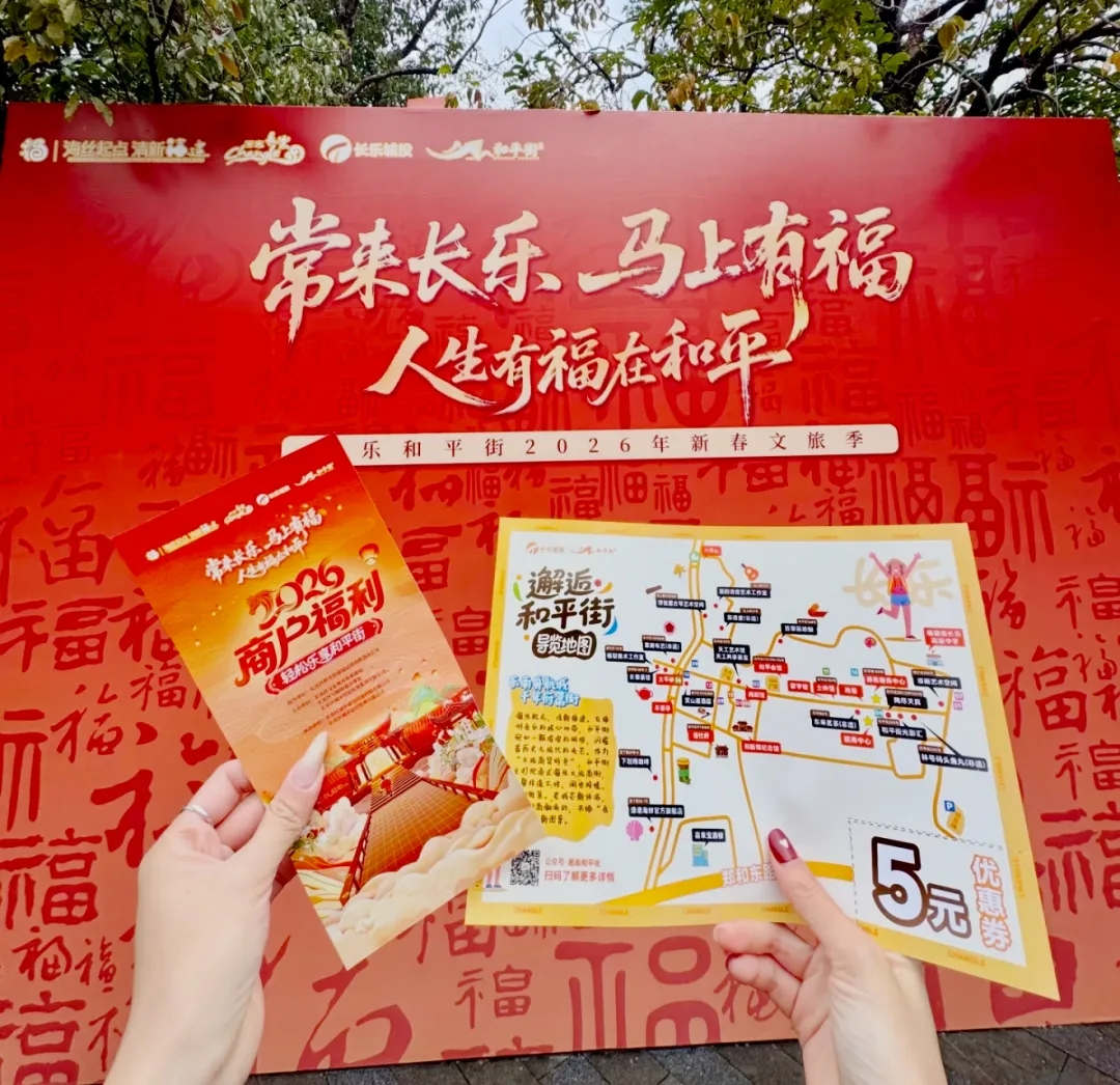 2026年和平街商戶福利 在拉動文旅消費方面,和平街通過豐富的場景體驗有效激活了市場潛力。星光夜市人聲喧騰,市民游客在此淘年貨、品美食,在喧囂間尋回記憶中的中國年。街區商戶適時推出的讓利優惠活動,配合“打卡集贊贏‘狀元’盲盒筆、冰箱貼”等高人氣互動環節,不僅增加了游玩的趣味性,更將和平街的文化溫度傳遞給每一位到訪者。