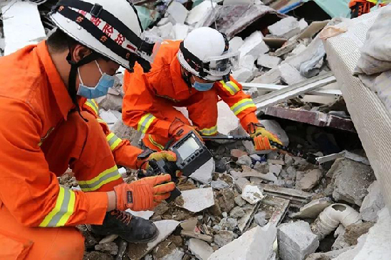 安撫鼓勵獲救人員 由于被困男性胸部被卡,救援難度較大,救援人員一邊對其安撫和輸氧,一邊同步破拆壓在其胸口的水泥板,10多分鐘后將其成功救出。“謝謝你們給了我們一家重生的機會”!事后了解到他們為一家四口,指戰員科學、及時救援讓他們一家化險為夷。此時離救援工作展開不到2個小時,已有6名被困人員成功得救。 連續奮戰——4小時救出 15人 為進一步提高救援效率和救援進度,指揮部通過詢問被救人員,并結合搜救犬、生命探測儀搜索情況,基本明確了剩余被困人員的位置,并按區域劃分出救援網格,采取人歇裝備不歇,分批輪流作戰的方法。
